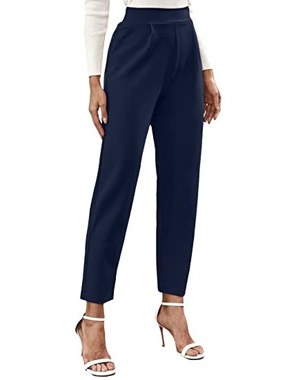 FRAULEIN Women's Formal Office Pants Casual Stretchy Trousers Tapered Pleated Straight Regular Fit with Pockets