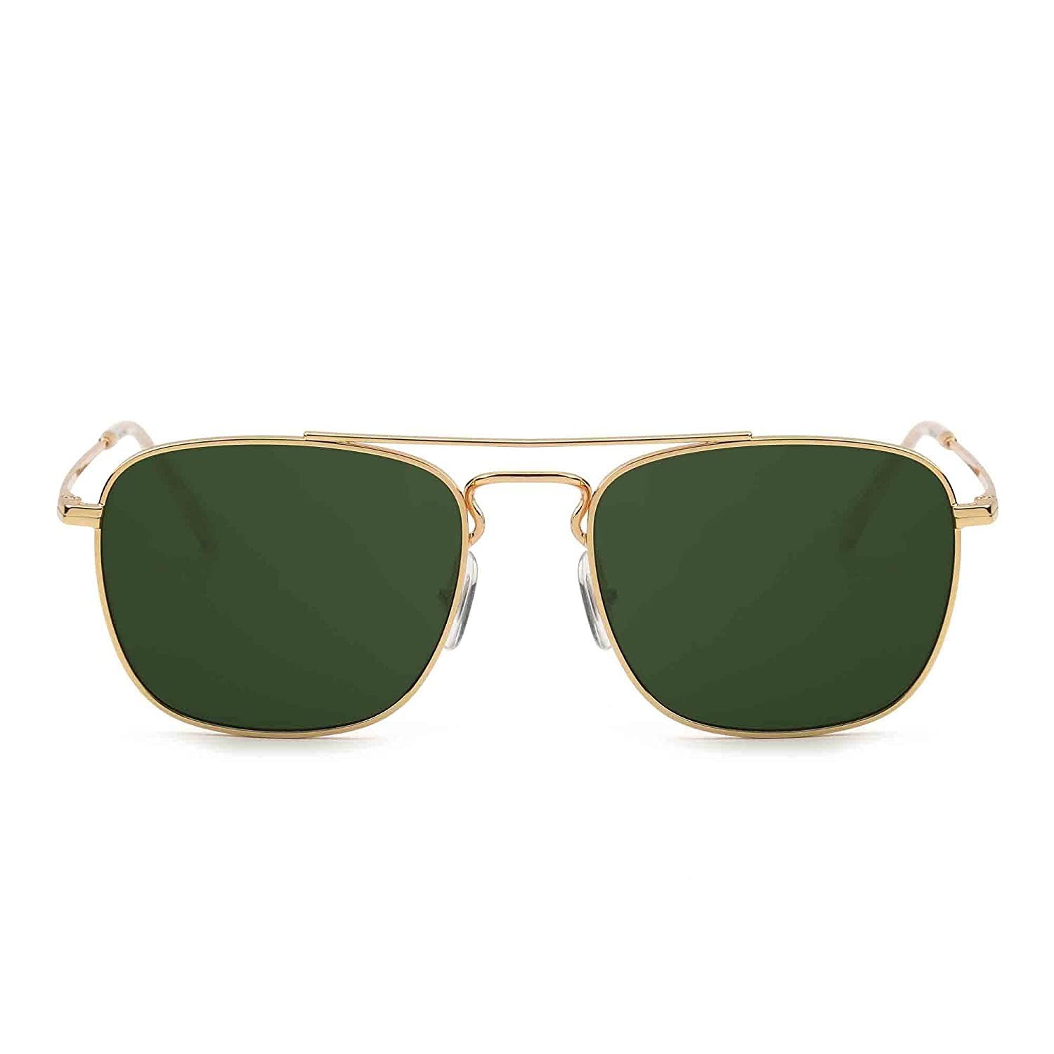 Fashion and stylish design - The square aviator sunglasses is suitable for any face. Alloy metal frames with acetate temple tips and glass lenses are impact, scratch resistant and durable that can show your taste, your choice, your personality.