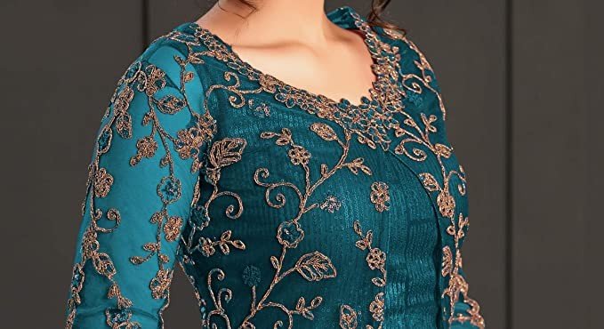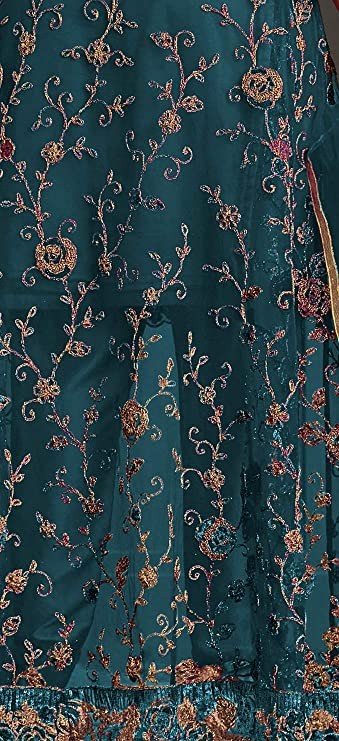 Top: Heavy Butterfly Net With Embroidered With Codding With Sequence Work (Semi-Stitched), Top Size: Max Up To 42",Top Size: Max Up To 58"
