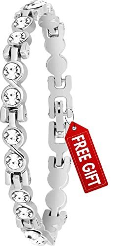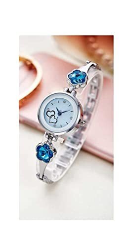 Acnos Flower Stone Blue Diamond Silver Bengle with 3 Diffrent Silver Bracelet for Girls and Women Pack of - 2