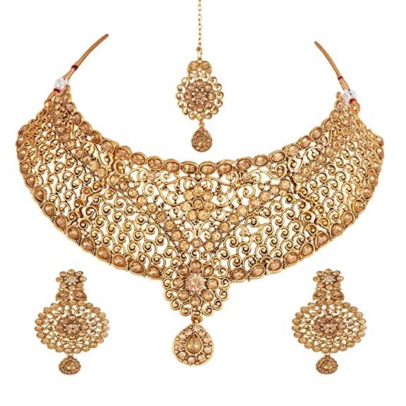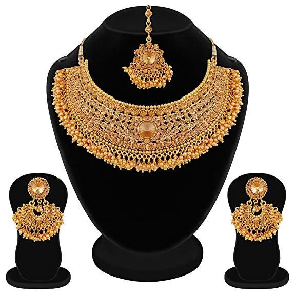 Apara Sparkling Gold Plated LCT Necklace Jewellery Set Combo for Women