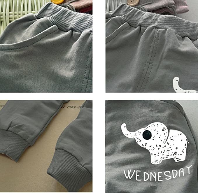 Bold N Elegant Sky Blue n Grey Cute Elephant Tail 2pc Baby Boy Girl Clothing Set Wednesday Smile Ganesha Full Length Set Tshirt Pant Set for Infant Toddler Kids