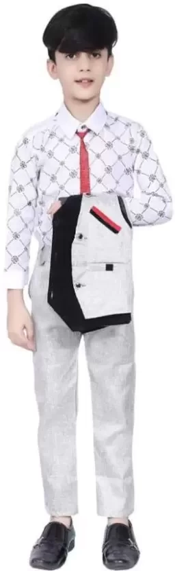 Boys Festive & Party Shirt, Waistcoat and Pant Set (Multicolor Pack of 1)