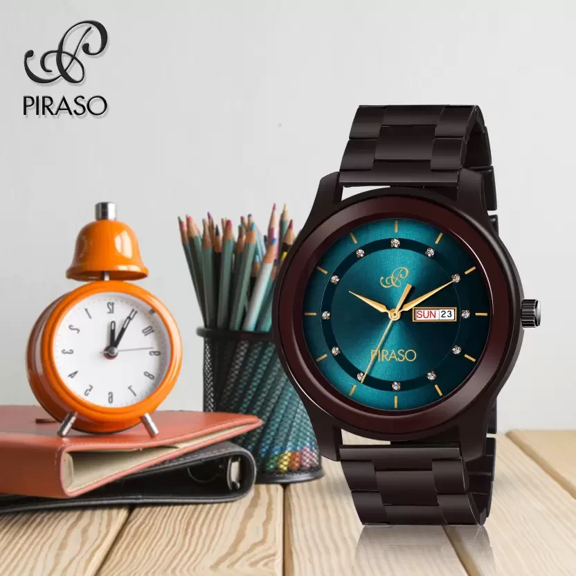 NEW LATEST STUNNING BLUE DIAL WITH BROWN CHAIN DAY AND DATE DISPLAY WATCH FOR BOYS