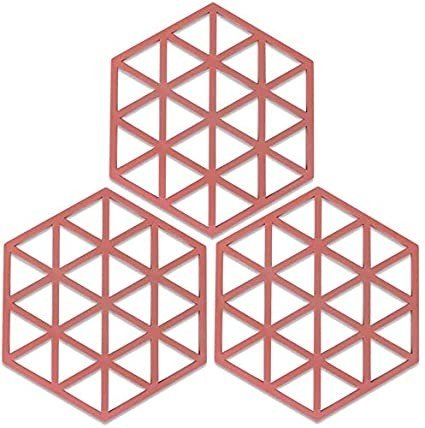 Dhruv Mart Silicone Trivet Mats Hot Pads Heat Resistant Bowl Mats Dish Mats Drink Coasters Non-Slip Pot Holders for Home Kitchen Dining Table Decoration (3, Red Triangle)