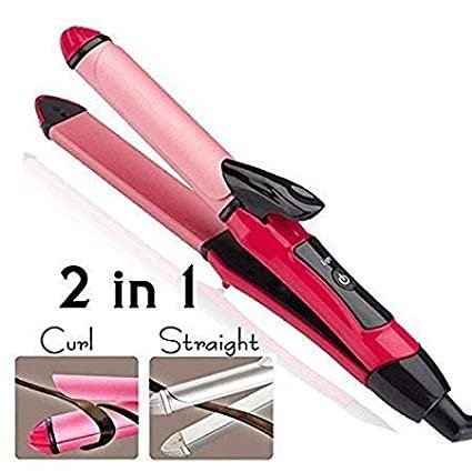 DIBEJI New Nova 2 in 1 Hair Straightener and Curler with Ceramic Coated Plate, Hair Straightener and Curler for Women (Pink) (2 in 1 Hair Straightener and Curler)