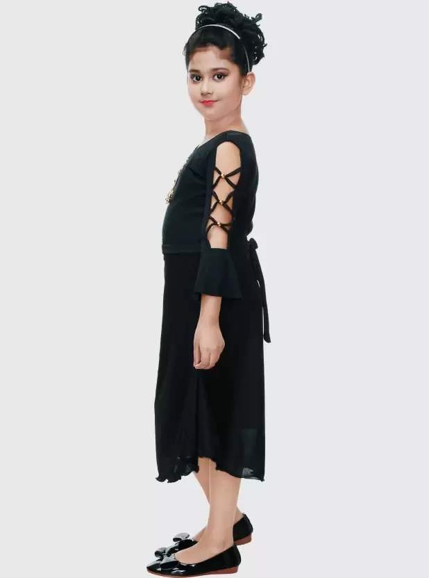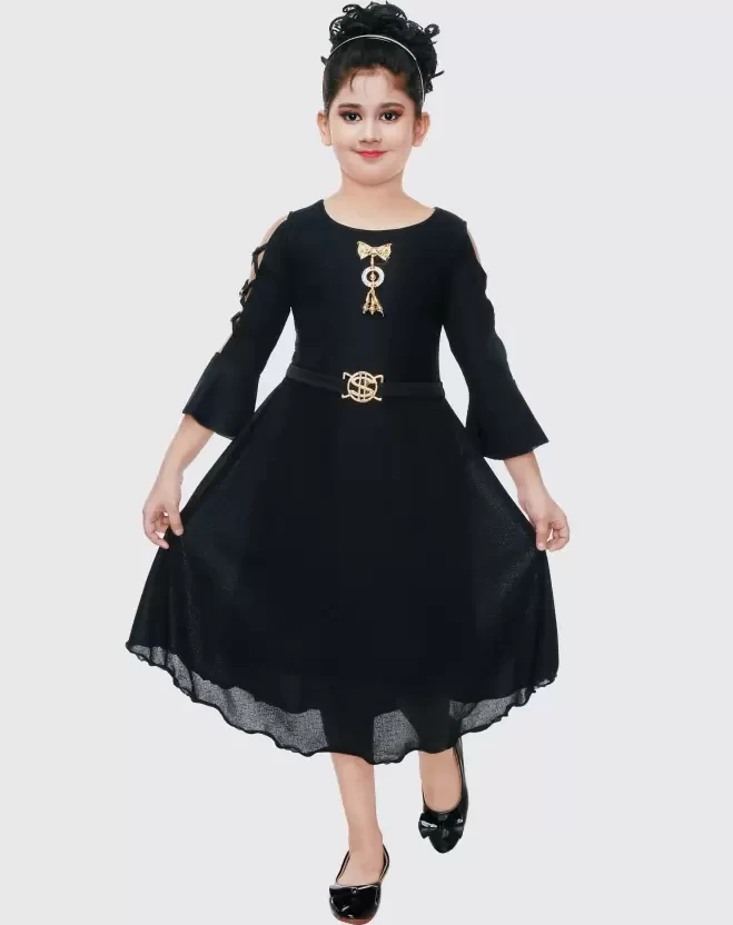 Girls Maxi/Full Length Party Dress (Black, Full Sleeve)