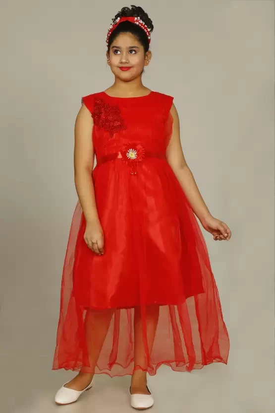 Girls Maxi/Full Length Party Dress (Red, Sleeveless)
