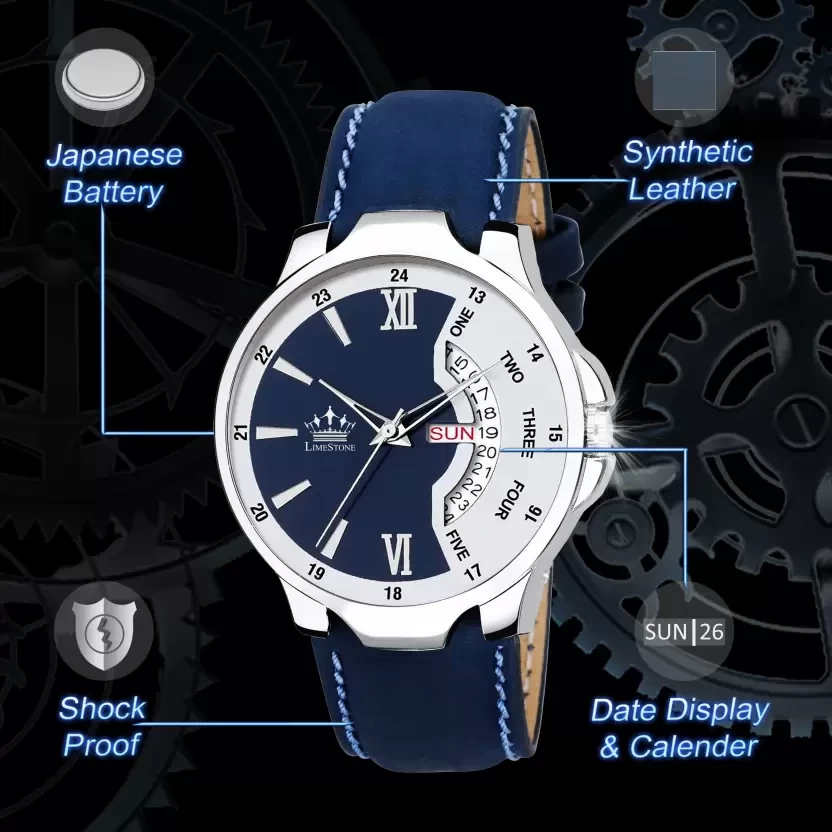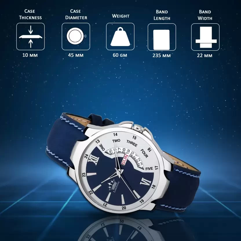 LS2821 Bleed Blue Day and Date Functioning Strap Adult Quartz Analog Watch - For Men