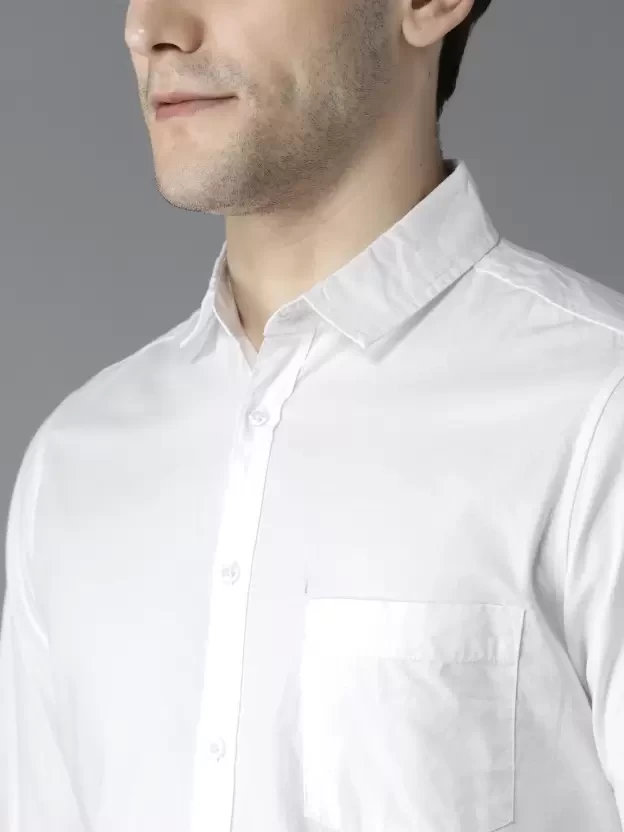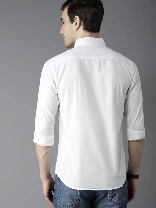 Men Slim Fit Solid Spread Collar Casual Shirt
