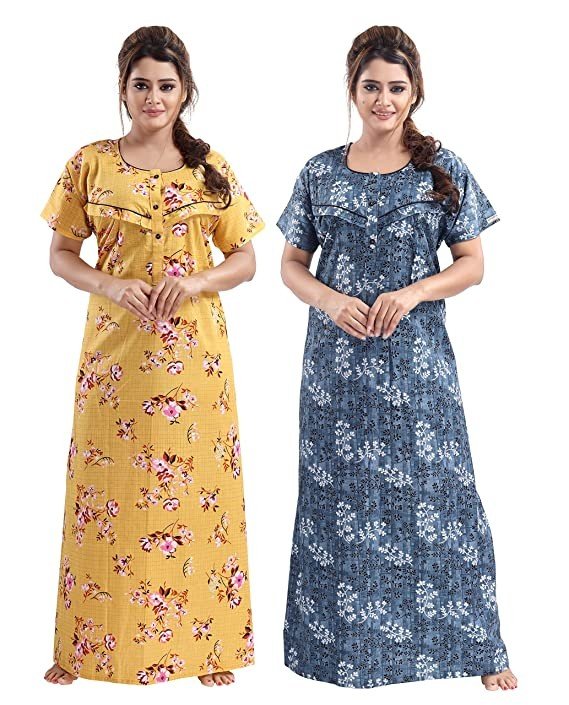 momley Women's Cotton All Over Print Maxi Maternity/Feeding Nighty (Pack of 2)