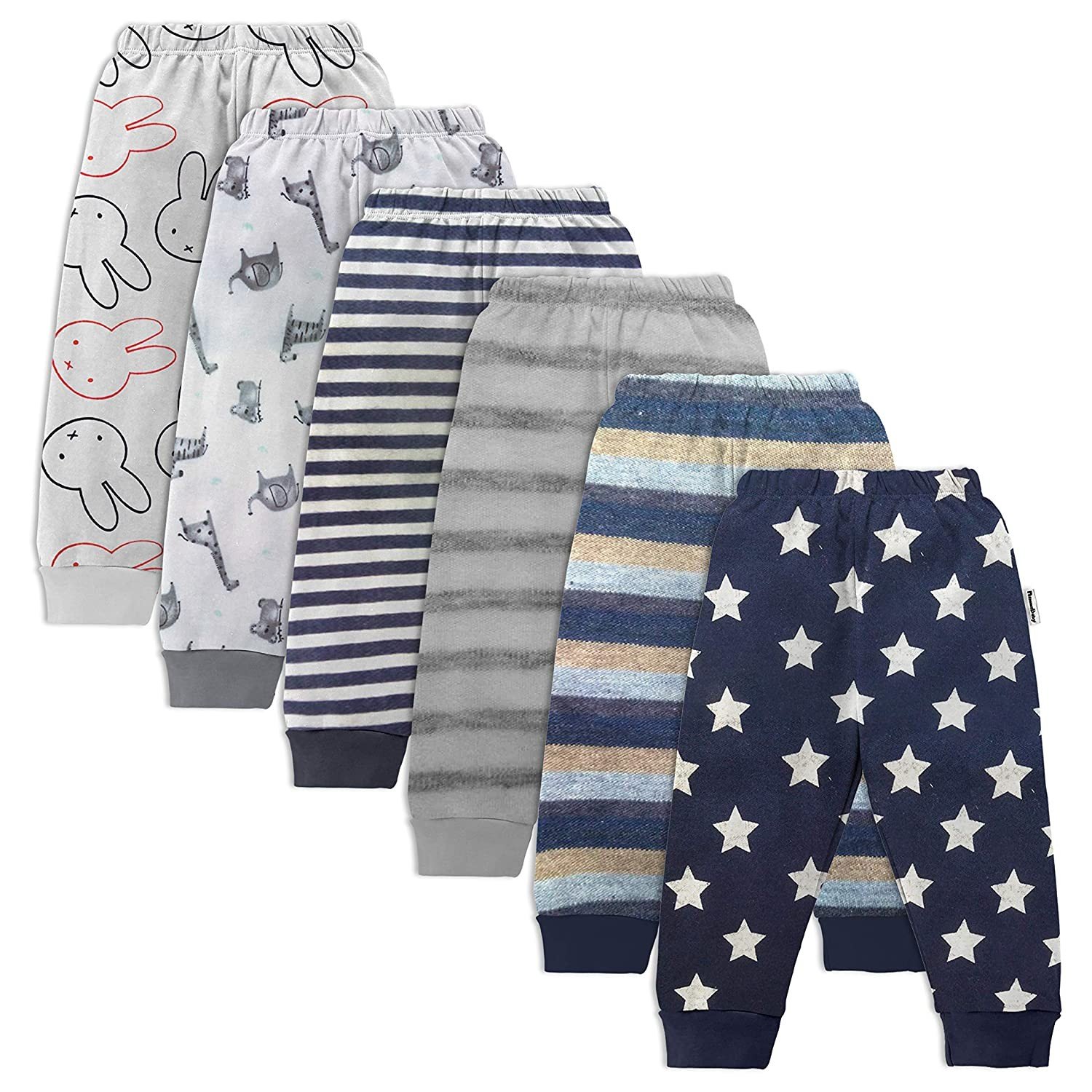 NammaBaby Unisex Baby Cotton Mixed Print Pyjama Rib Pants Assorted Prints- Pack of 6