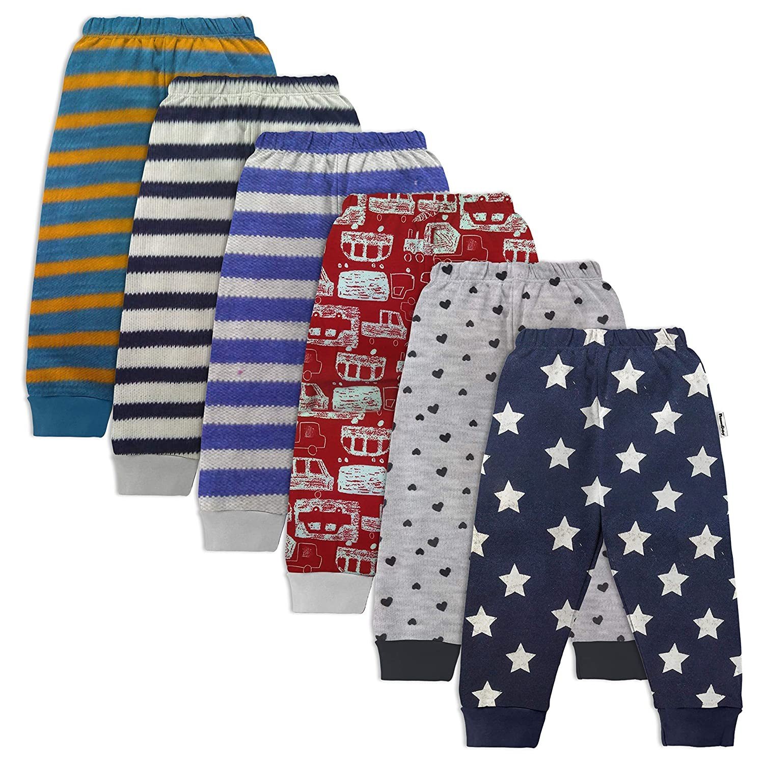 NammaBaby Unisex Baby Cotton Mixed Print Pyjama Rib Pants Assorted Prints- Pack of 6