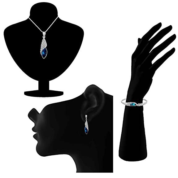 Om Jewells Combo of Crystal Blue Exquisite Rhodium Plated Pendant Necklace Set and Bracelet for Women