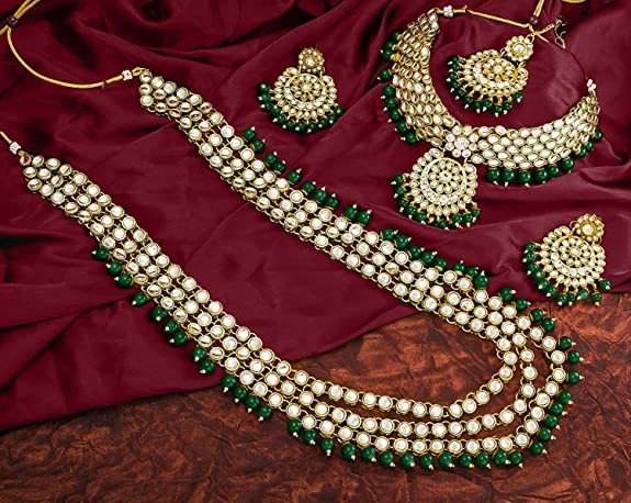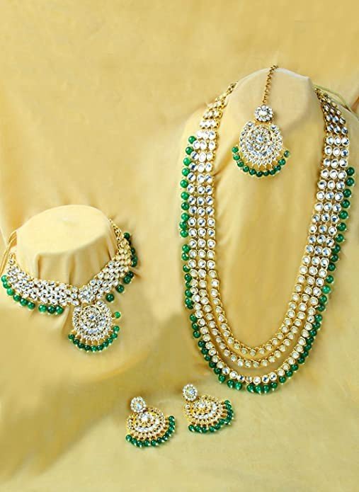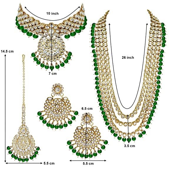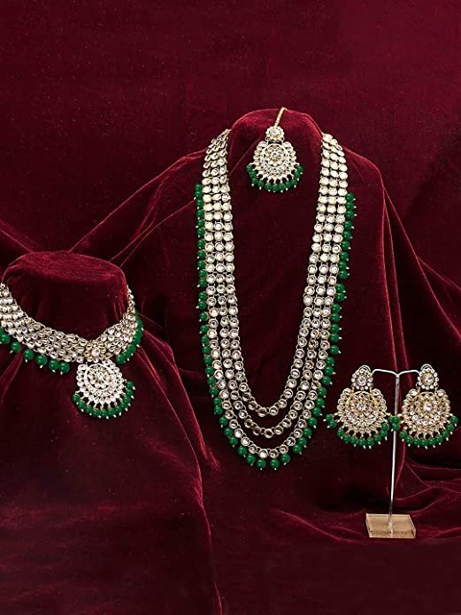Peora 18K Gold Plated Kundan Faux Bead Bridal Necklace Jewellery Set for Women Girls
