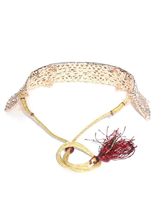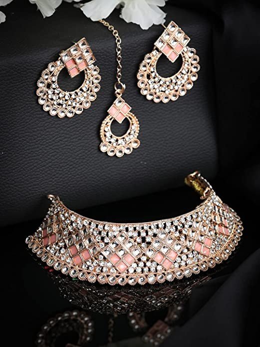 Priyaasi Pink Kundan Stones Rose Gold Plated Choker Set with MaangTikka