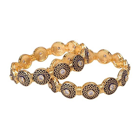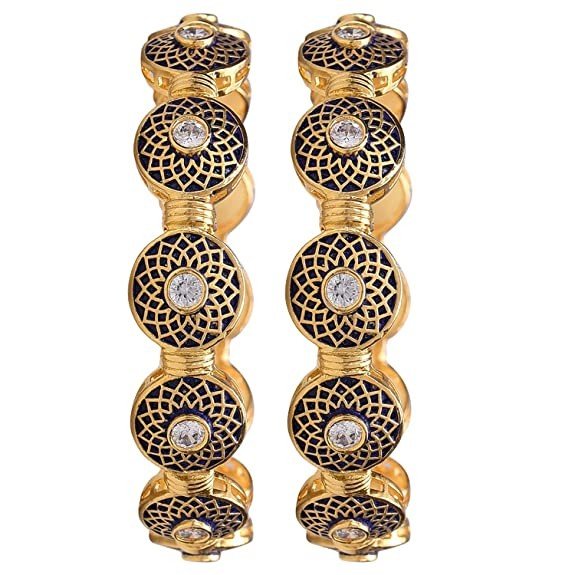 Ratnavali Jewels Brass Gold Plated and Cubic Zirconia Bangles for Women