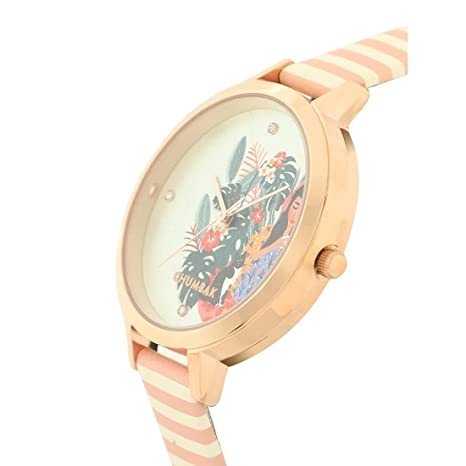 Teal by Chumbak Live Slow Watch & Bracelet Set - Peach & Rose Gold - Jewelry Watch, Wrist Watch for Women, Dress Watch, Fashion Accessory with Bracelet Set, Slim Strap