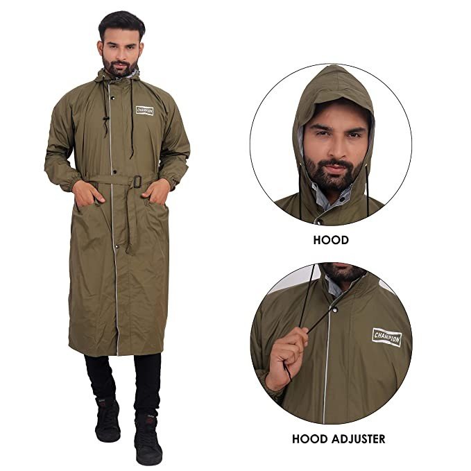 Construction: This Reversible Use Rainwear Is Made From Double Layered Nylon Fabric. Every Joint Is Seam Sealed With Additional Leak Proof Stitching Making It Completely Waterproof. Overlaying Flap With Snap Buttons Over Zippers Prevents Water Seepage. It Also Comes With High Collars, Adjustable Hood And Front Pockets With Flaps For Added Protection. Additional Waist Strap For A Smarter Look.