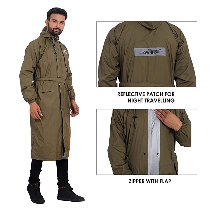 The Clownfish Rain Coat for Men Waterproof Raincoat Nylon Reversible Double Layer Longcoat For Men Bike Rain Suit Rain Jacket Suit Inner Mobile Pocket with Storage Bag