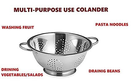 Strainer for Home and Restaurant. Multi-purpose colander for draining out liquid from pasta, canned fruits, vegetables, Rice, Noodle etc. .