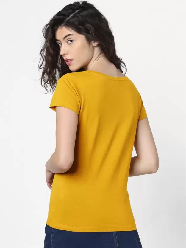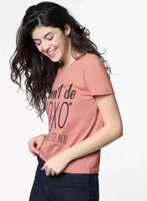 Typography Women Round Neck Pink, Yellow T-Shirt (Pack of 2)