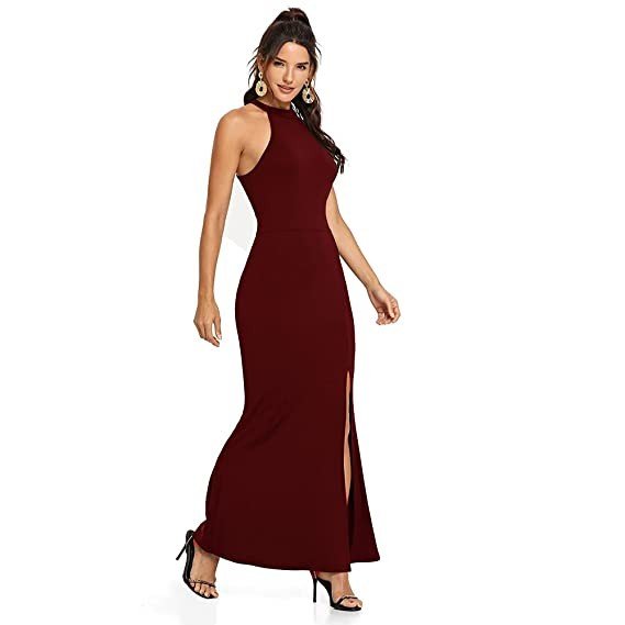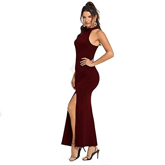 Vivvli Women's Bodycon Front Slit Maxi Western Dress