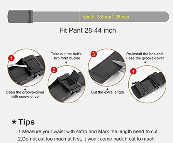 Easy Use — Just Slide The Dress Belt Into The Sliding Buckle And Pull The Belt Through, The Nice Belts Buckle Simply Auto Locks The Automatic Belt, To Release The Belt, Gently Push The Lever On The Side Of The Removable Buckle And Lock Will Snap. Simple, Smooth And Sleek!