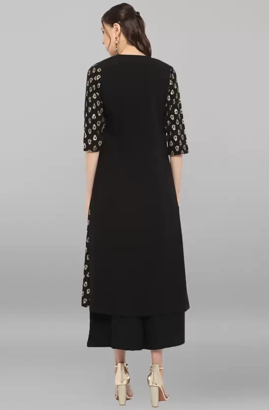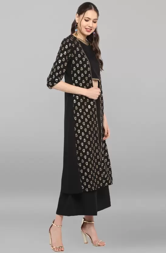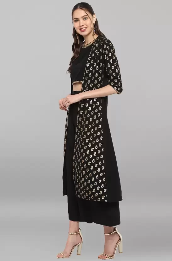 Women Ethnic Jacket, Blouse and Palazzo/Trouser Set Poly Crepe