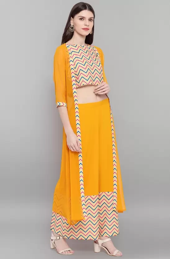 Ethnic Jacket, Top and Palazzo Set