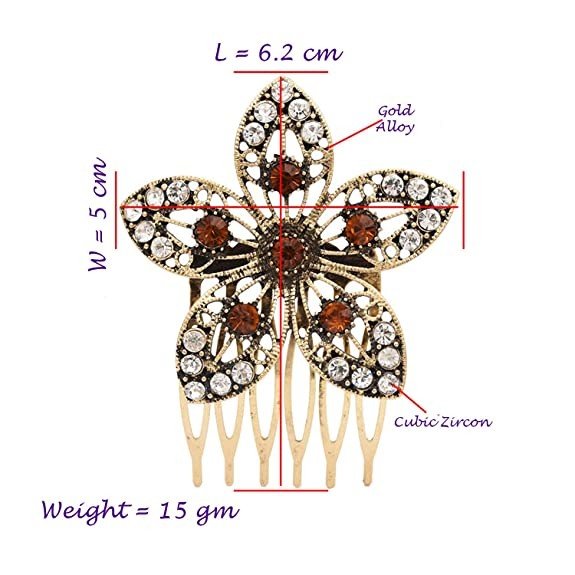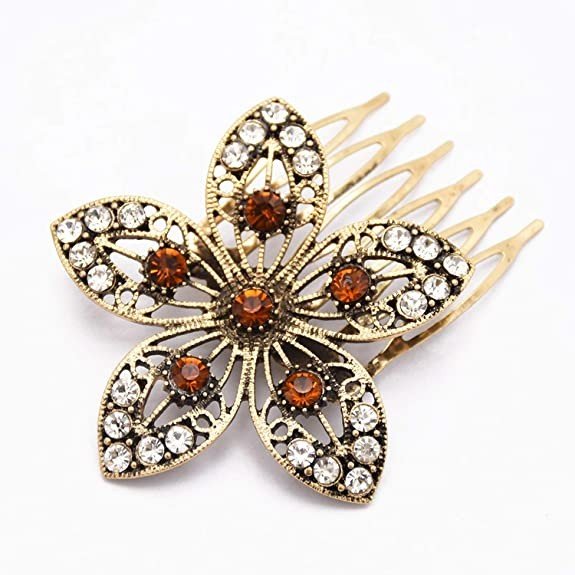 Young & Forever Antique Gold Brown Crystal Flower Hair pins Hair Clips Hair Comb for Girls Fancy Diamond Hair Accessories for Women