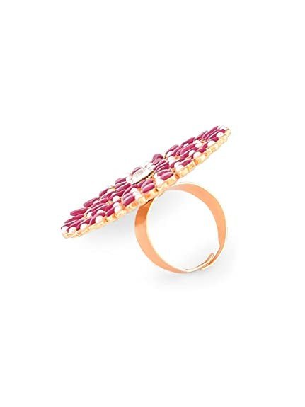 Zaveri Pearls Floral Look Pink Finger Ring For Women-ZPFK9148